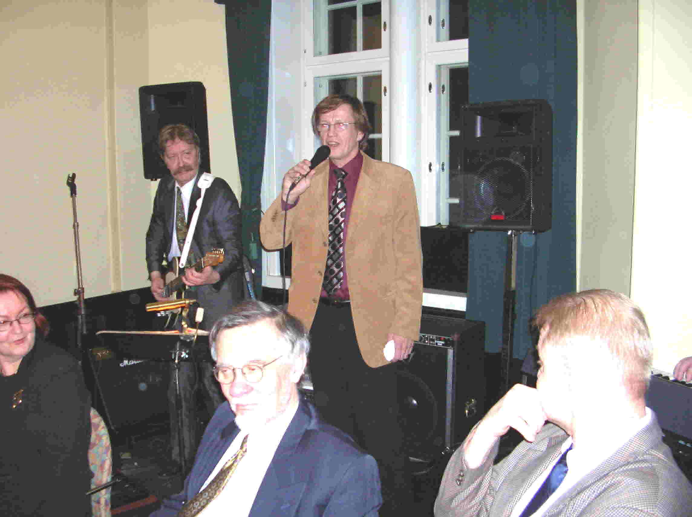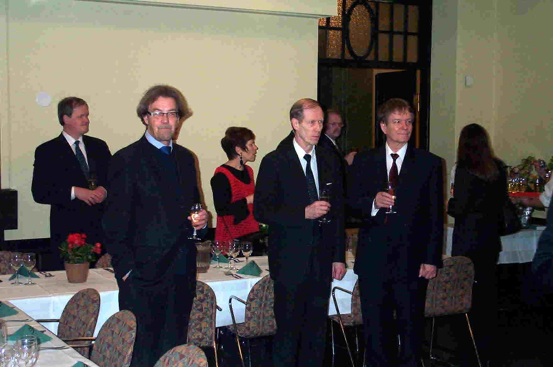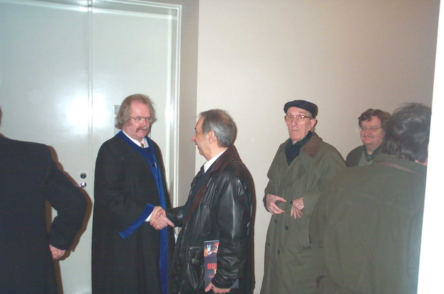 1) Väitösaitiossa (tiukka paikka!!!) 2) Väitösaitiossa II 3) Vastaväittäjät: (vas.) prof. Timo Toivonen (TKKK), prof. Vesa Kurkela (Sibis) ja kustos prof. J.P.Roos (HY) 4) Muusikkojen liiton johtoakin oli paikalla 5) ex-johtoa, 6) Onnittelemassa kaksi legendaa (Taisto Ahlgren ja Erik Lindström, sitten 7) Odotellaan JP:tä 8) JP saapui 9) Nostetaan jo maljoja ja 10) toisen kerran 11) Vesa puhuu 12) Minä ja Kulta 13) Elämäkertaseminaarilaisia ja sukuakin 14) Äitini Maria ja Tuija 15) Pöytäseuruetta 16) Ismo laulaa Roopen ja 17) Ahtin säestäessä.