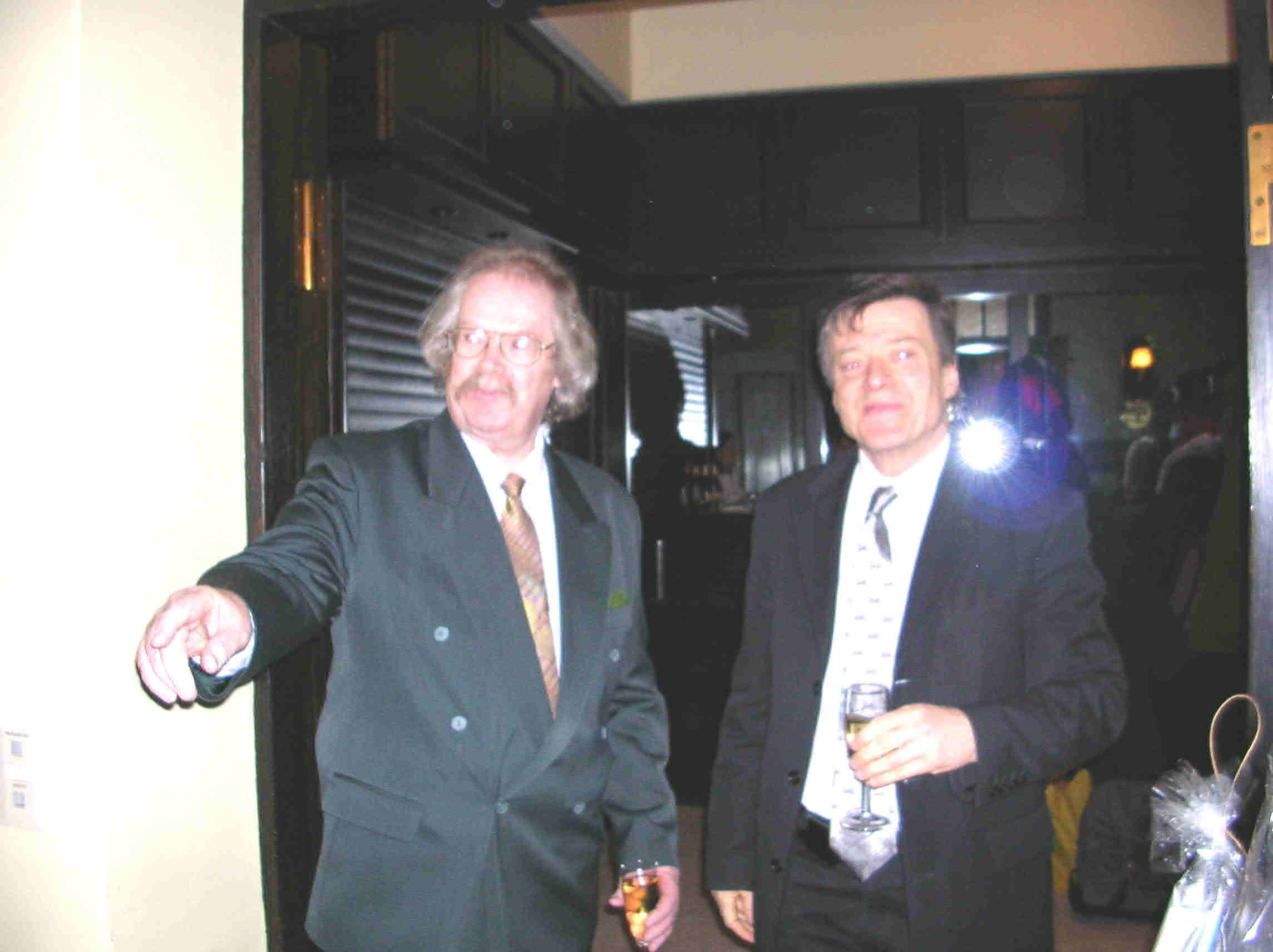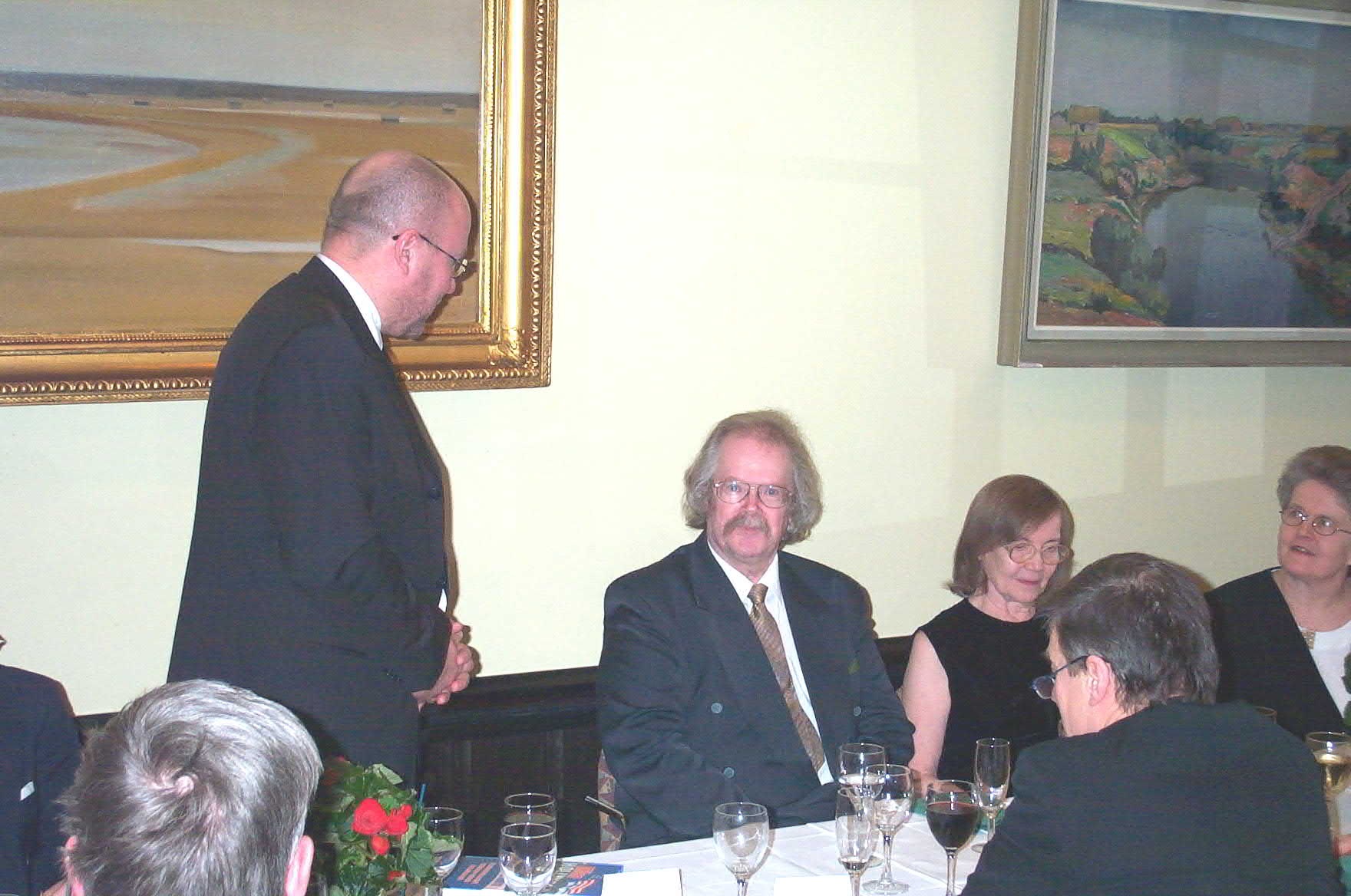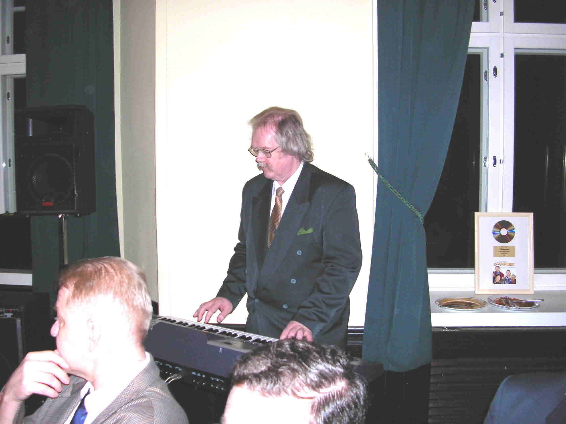1) Väitösaitiossa (tiukka paikka!!!) 2) Väitösaitiossa II 3) Vastaväittäjät: (vas.) prof. Timo Toivonen (TKKK), prof. Vesa Kurkela (Sibis) ja kustos prof. J.P.Roos (HY) 4) Muusikkojen liiton johtoakin oli paikalla 5) ex-johtoa, 6) Onnittelemassa kaksi legendaa (Taisto Ahlgren ja Erik Lindström, sitten 7) Odotellaan JP:tä 8) JP saapui 9) Nostetaan jo maljoja ja 10) toisen kerran 11) Vesa puhuu 12) Minä ja Kulta 13) Elämäkertaseminaarilaisia ja sukuakin 14) Äitini Maria ja Tuija 15) Pöytäseuruetta 16) Ismo laulaa Roopen ja 17) Ahtin säestäessä.